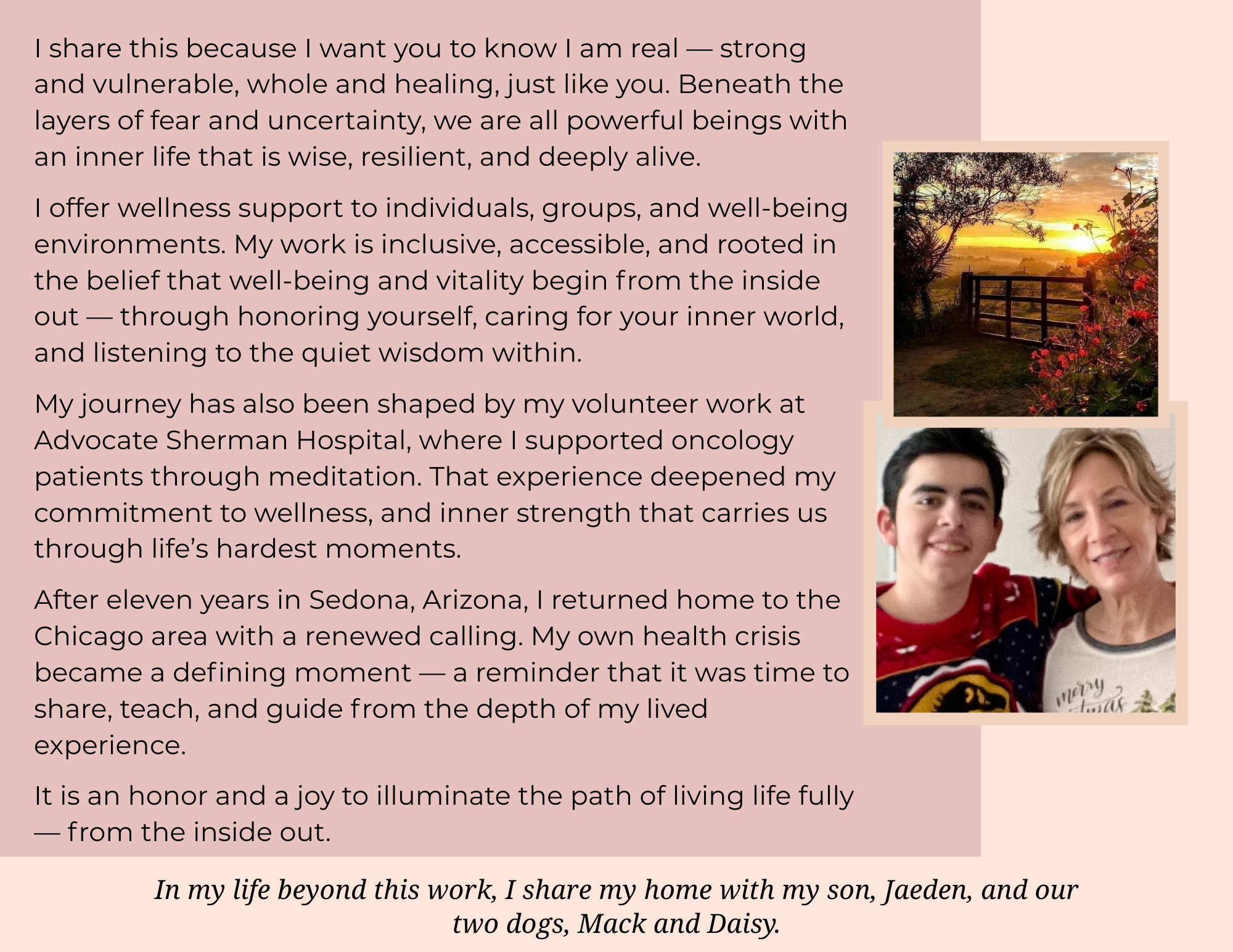 Disclaimer: These offerings support personal growth and emotional wellbeing and are not a substitute for medical or psychological care. Participation is voluntary; please honor your body and mind throughout all practices.
