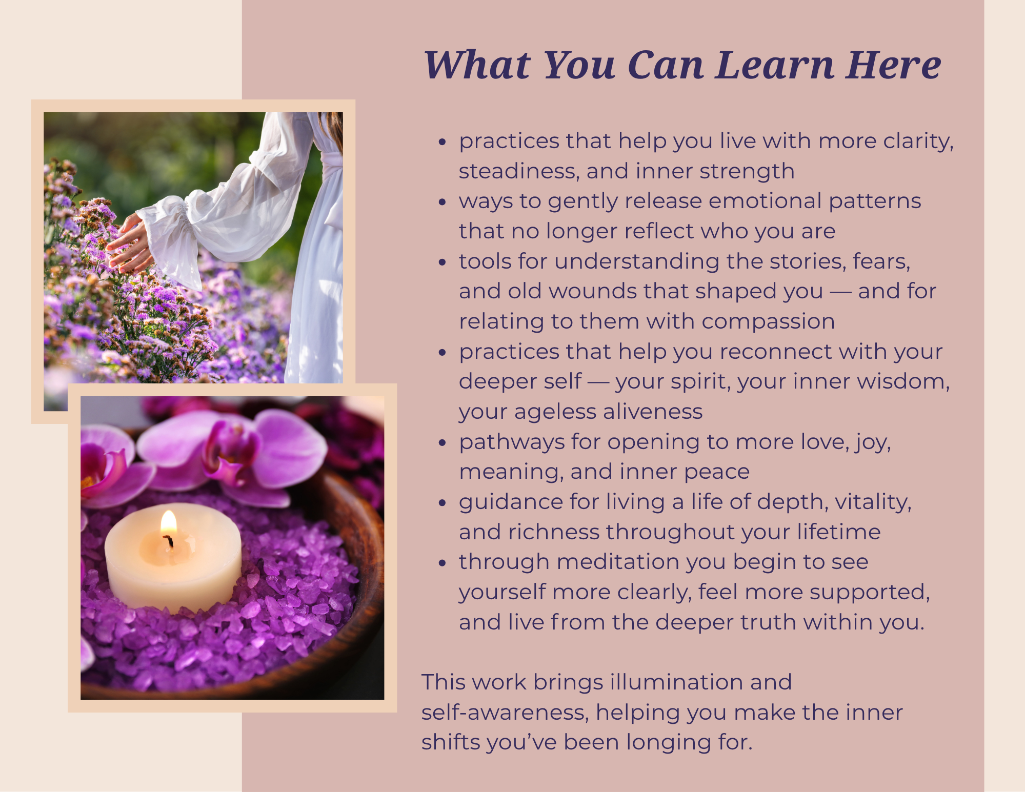 Our bodies want to cooperate with us, our Soul and spirit is an ally. Everything in nature is in harmony. Why not us? Why not you? Begin living in harmony from the inside out.